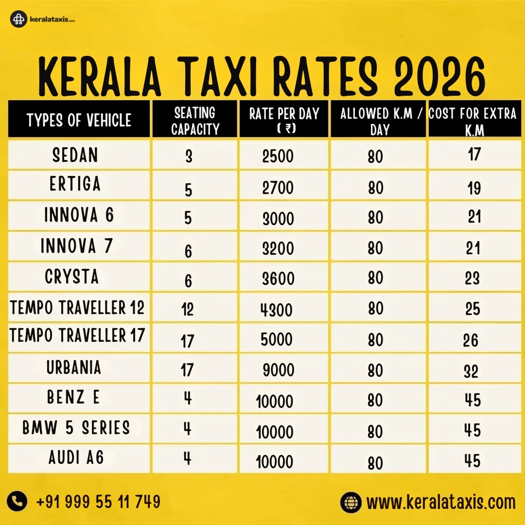 The Kerala state government regularly updates the fare structure for taxis to ensure fairness for both passengers and drivers. For 2026, the following government-approved rates apply: